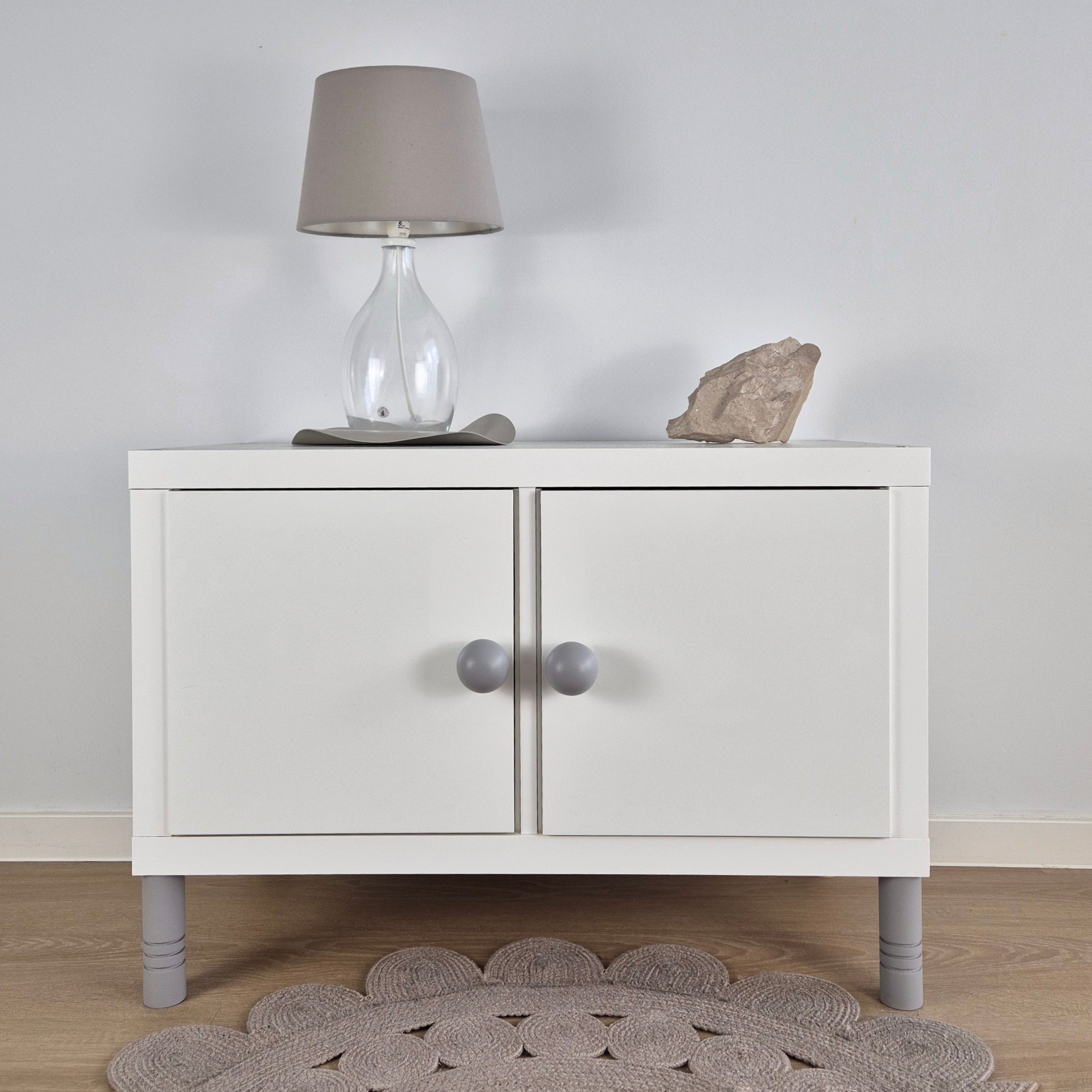 You can find the furniture legs in the same color as this grey knob in our shop.