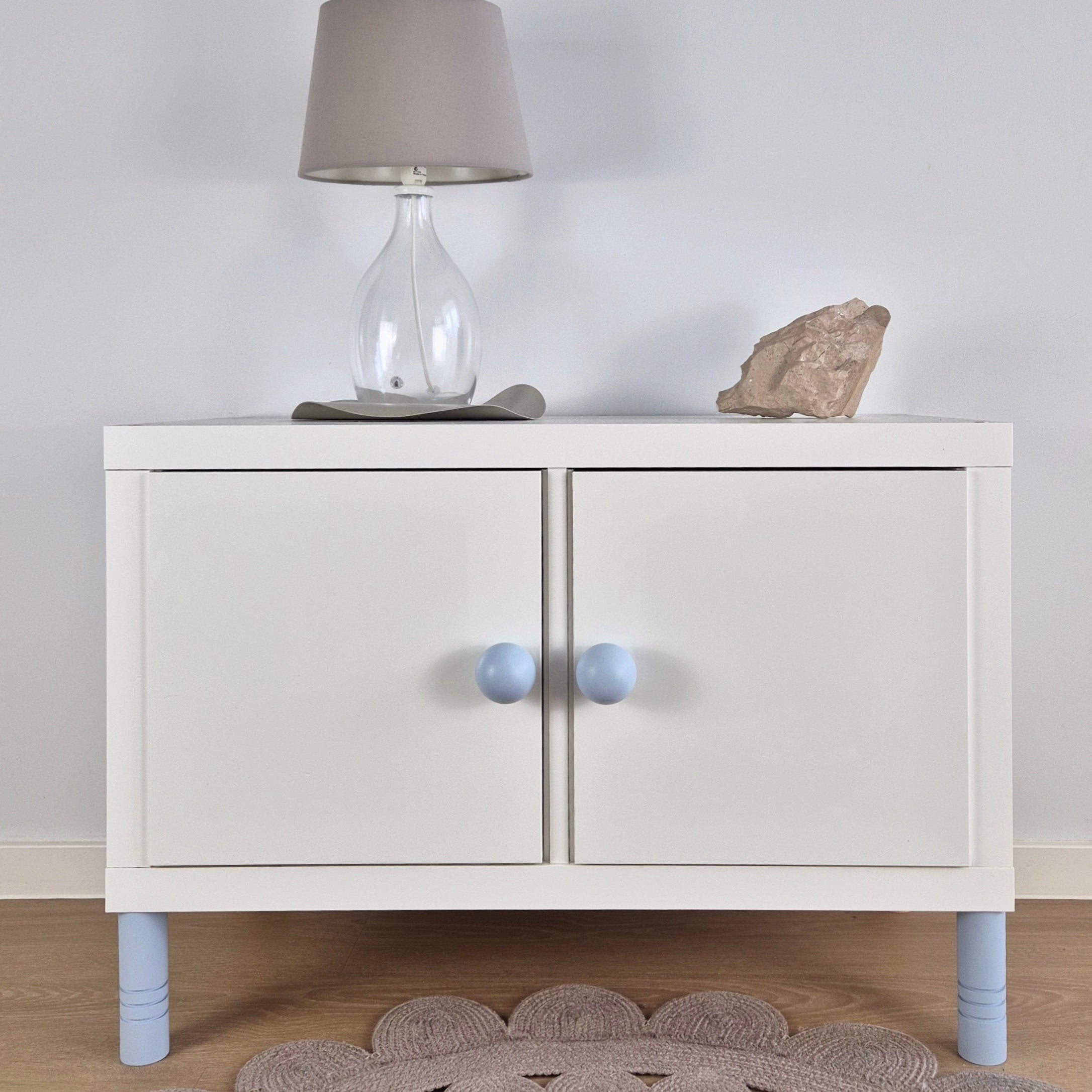 Mix and match different colors and sizes. You can find the furniture legs in the same color as the light blue knob in our shop