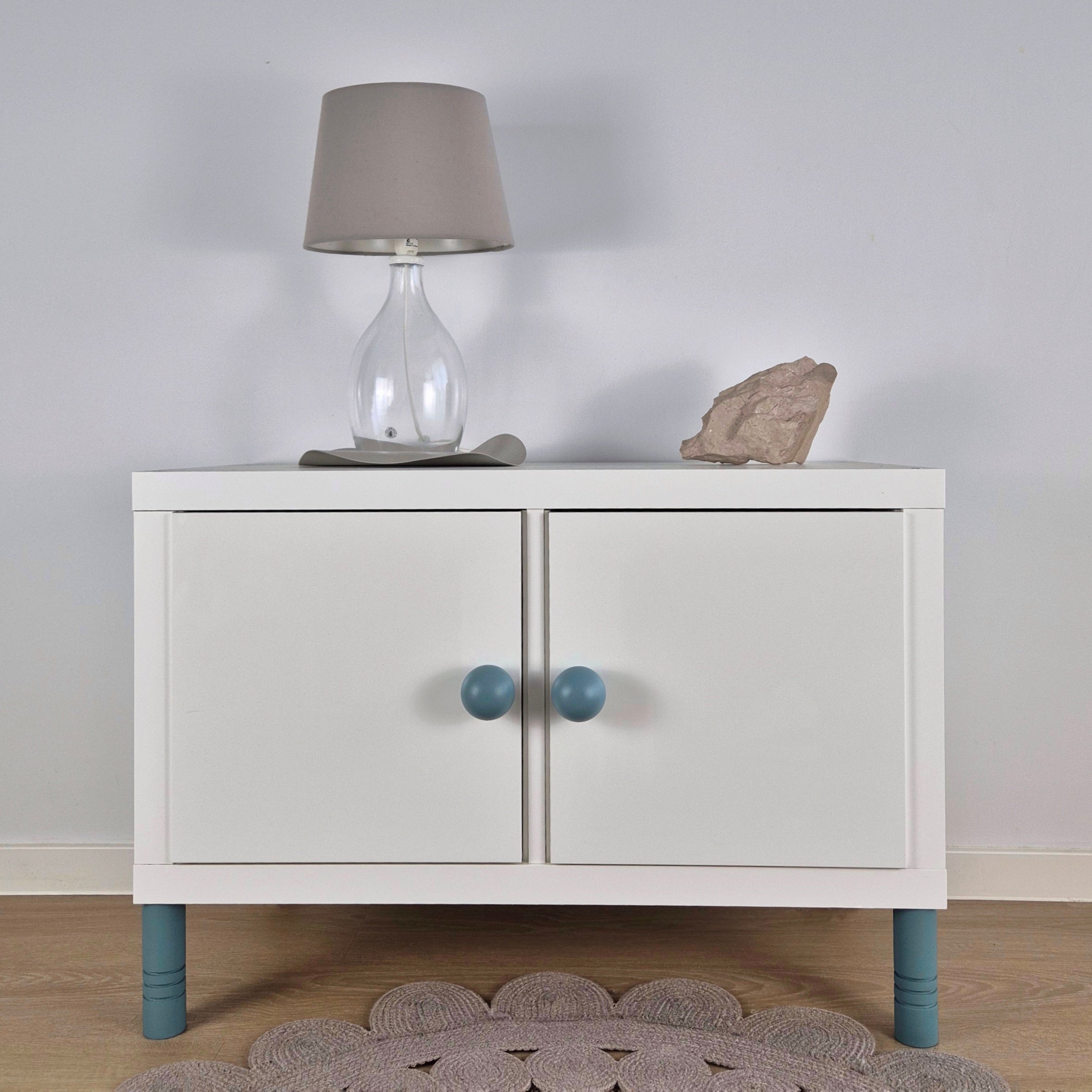 Mix and match different colors and sizes. You can find the furniture legs in the same color as this turquoise knob in our shop.